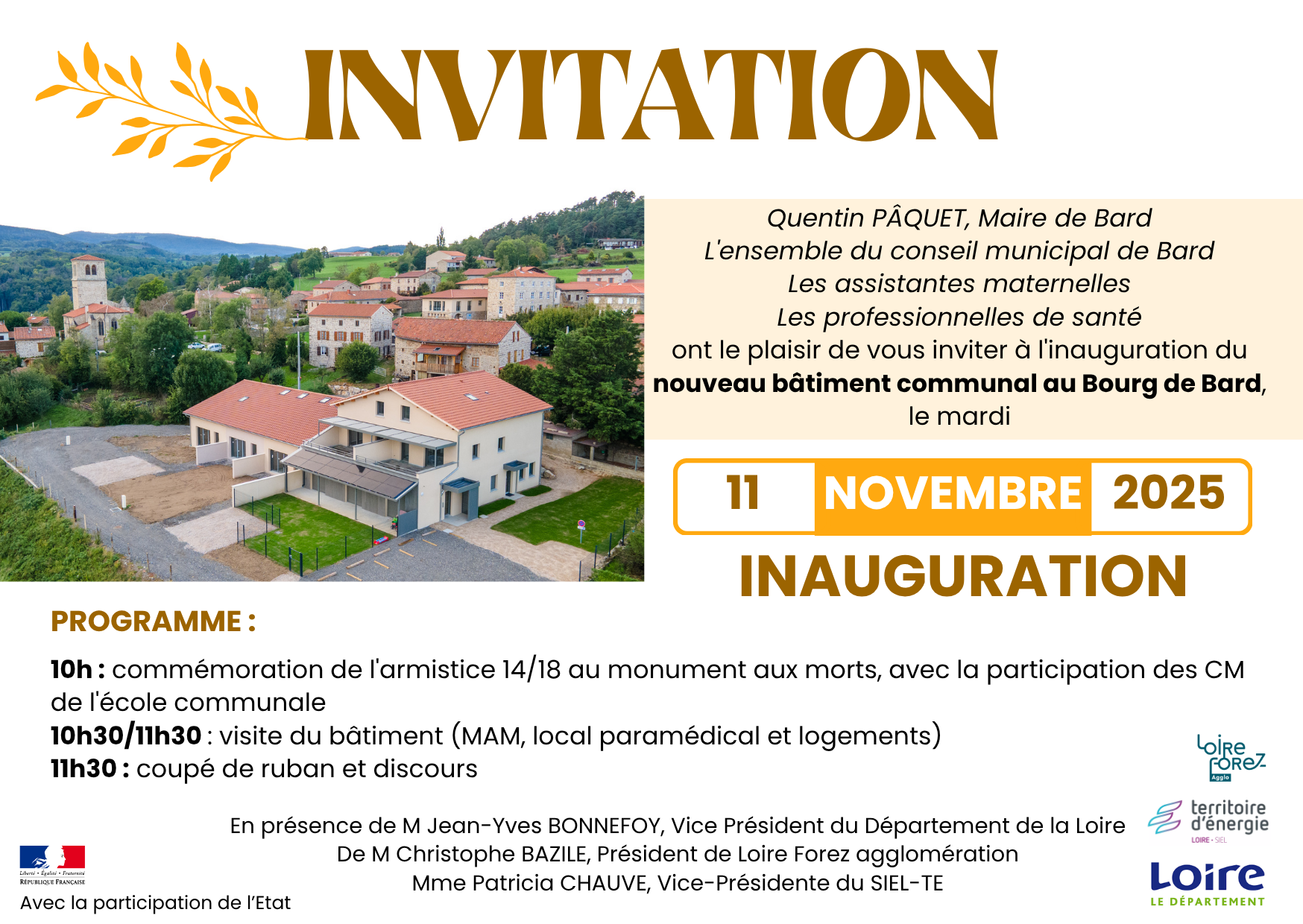 - Inauguration et visite du nouveau bâtiment du bourg (voir la pièce jointe)