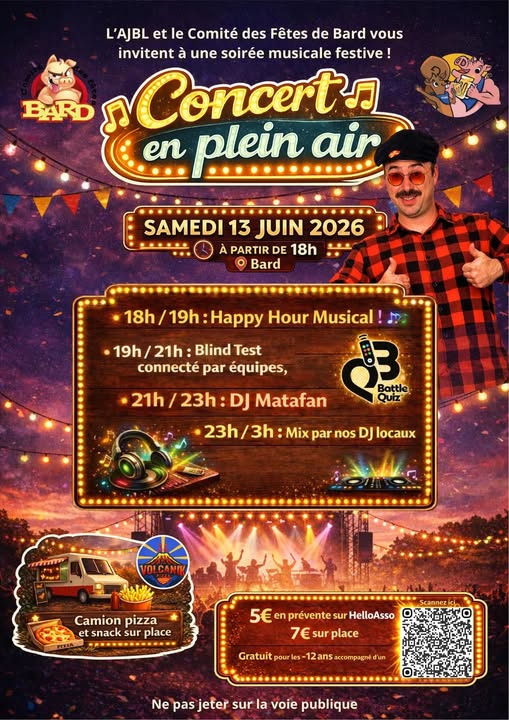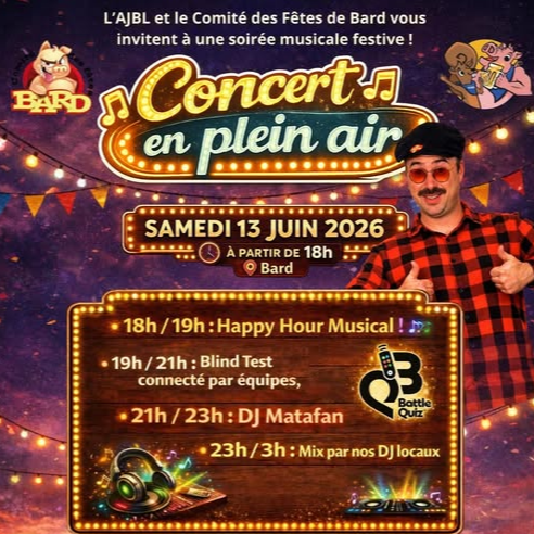 5€ en prévente sur Hello Asso : https://www.helloasso.com/associations/comite-des-fetes-de-bard/evenements/soiree-musicale-festive