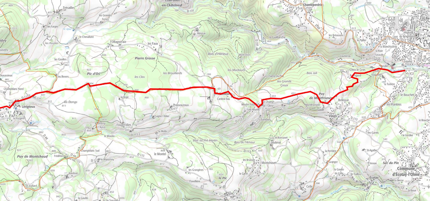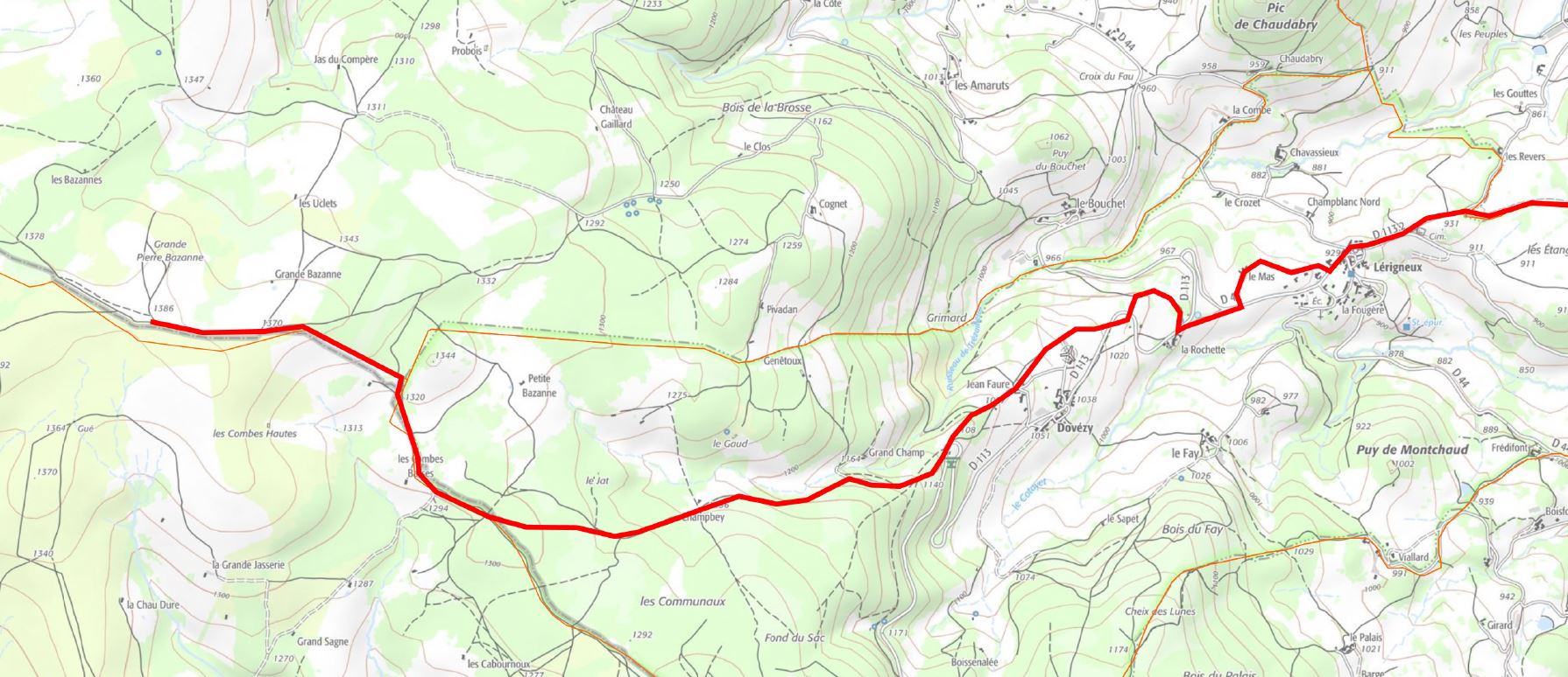 Parcours plus grand 12km départ de Lérigneux
