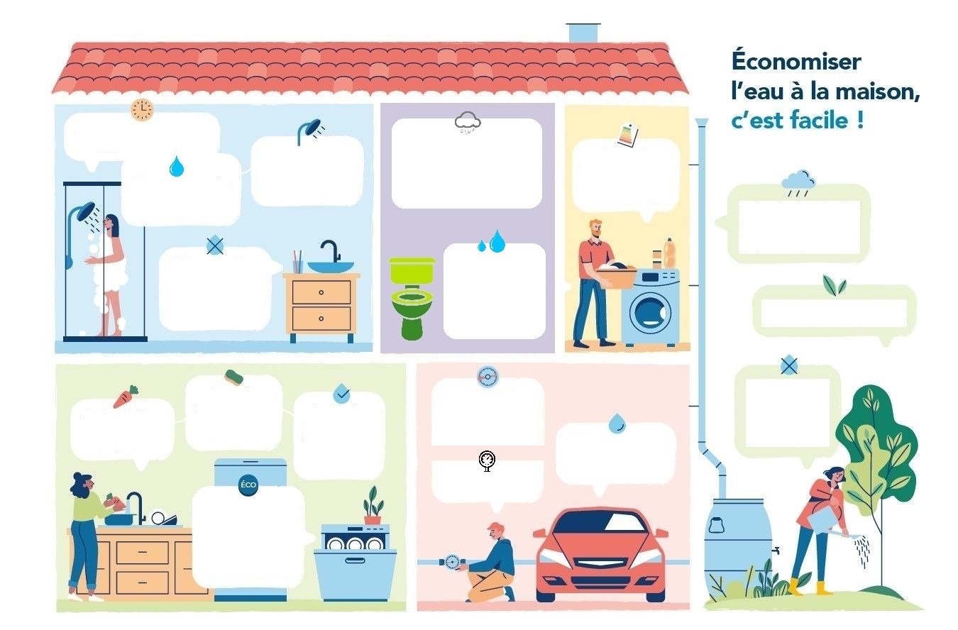 - Nous avons utilisé les documents fournis (la maison et les images) pour travailler sur les économies d'eau.